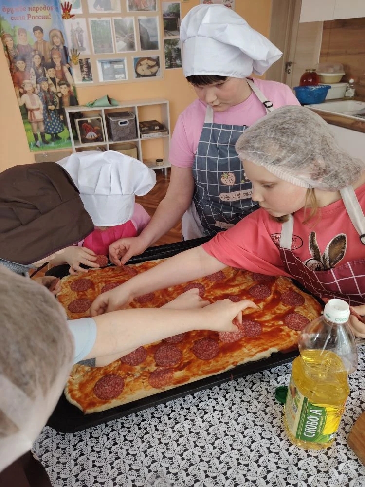 «Школа кулинара» продолжает радовать всех учеников вкусными шедеврами. 21 марта воспитанники группы "Алые паруса" испекли оно из самых любимых блюд – пиццу, а дети группы «Радуга» осваивали приготовление бургеров.