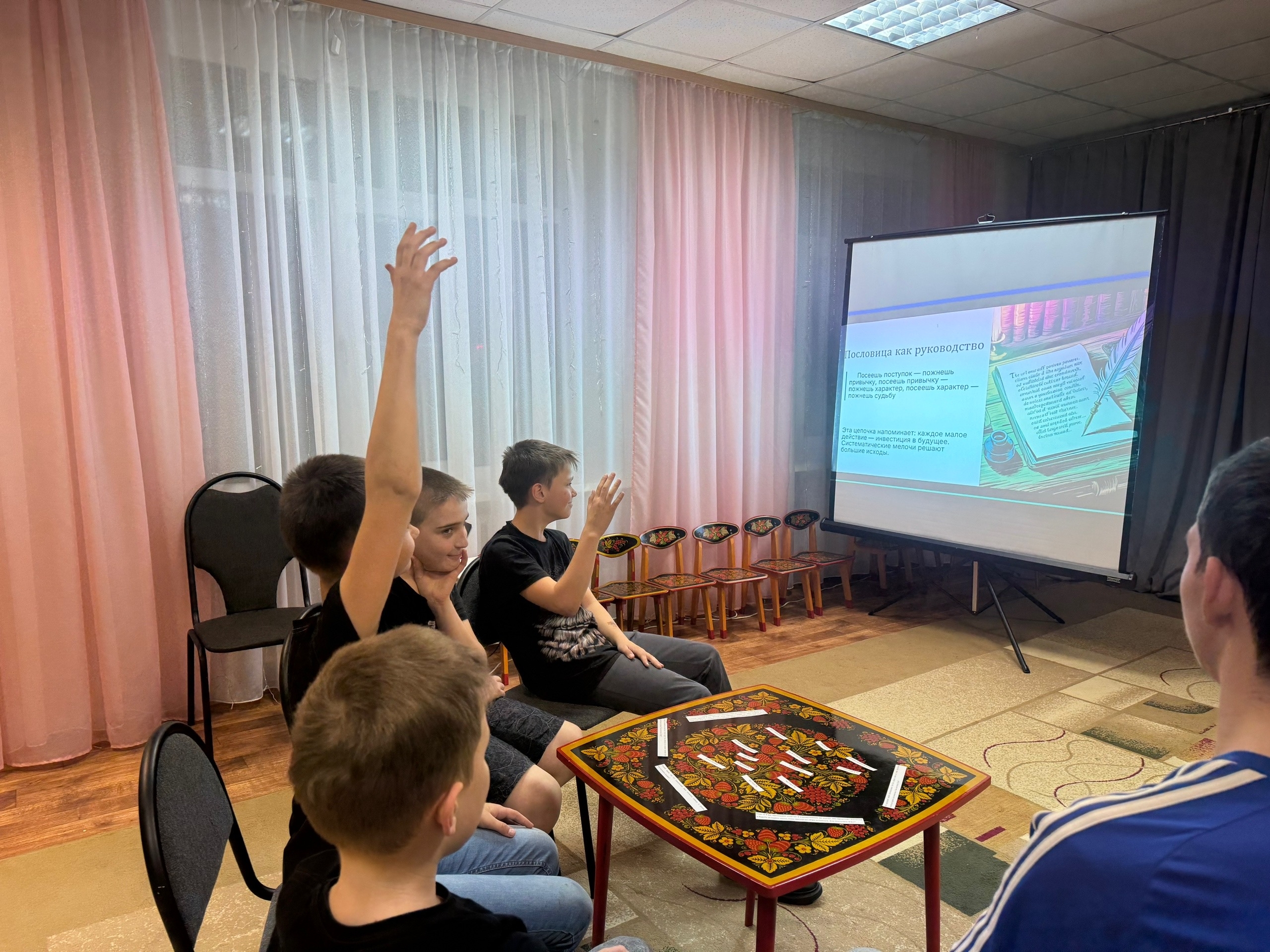 Ребята учились собирать ассоциации к ключевым понятиям «характер» и «поступок», прослушали мини - лекцию « Связь поступка и характера», выполнили упражнения: «Компас характера», «Цепь черт характера»!
