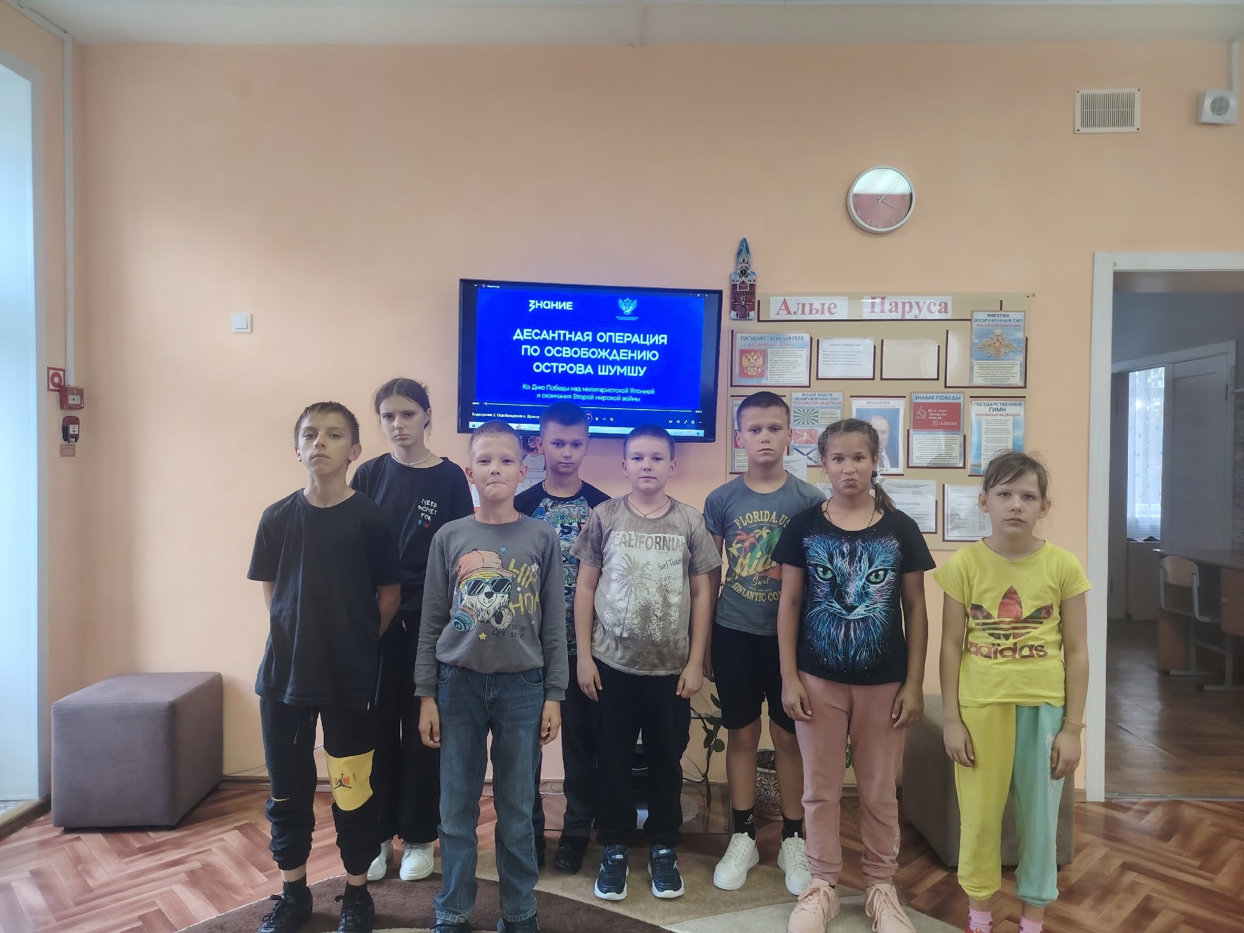 В ходе урока дети посмотрели фильм «Десантная операция по освобождению острова Шумшу», обсудили важность этой победы для нашей страны и всего мира.