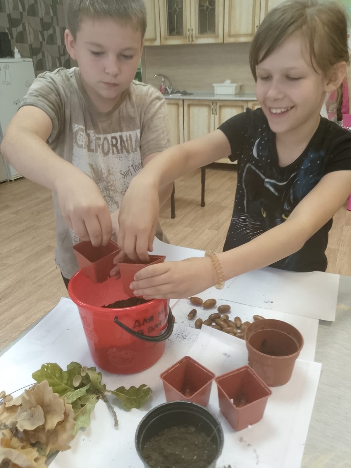 Посадка деревьев - это важный и необходимый процесс, который помогает сохранить здоровье нашей планеты. Мы заботимся об окружающей среде и улучшаем её качество. Воспитанники группы "Радуга" под руководством педагога О. В. Ледовской посадили желуди и теперь будут ждать, когда появятся всходы, чтобы весной высадить их на улицу.