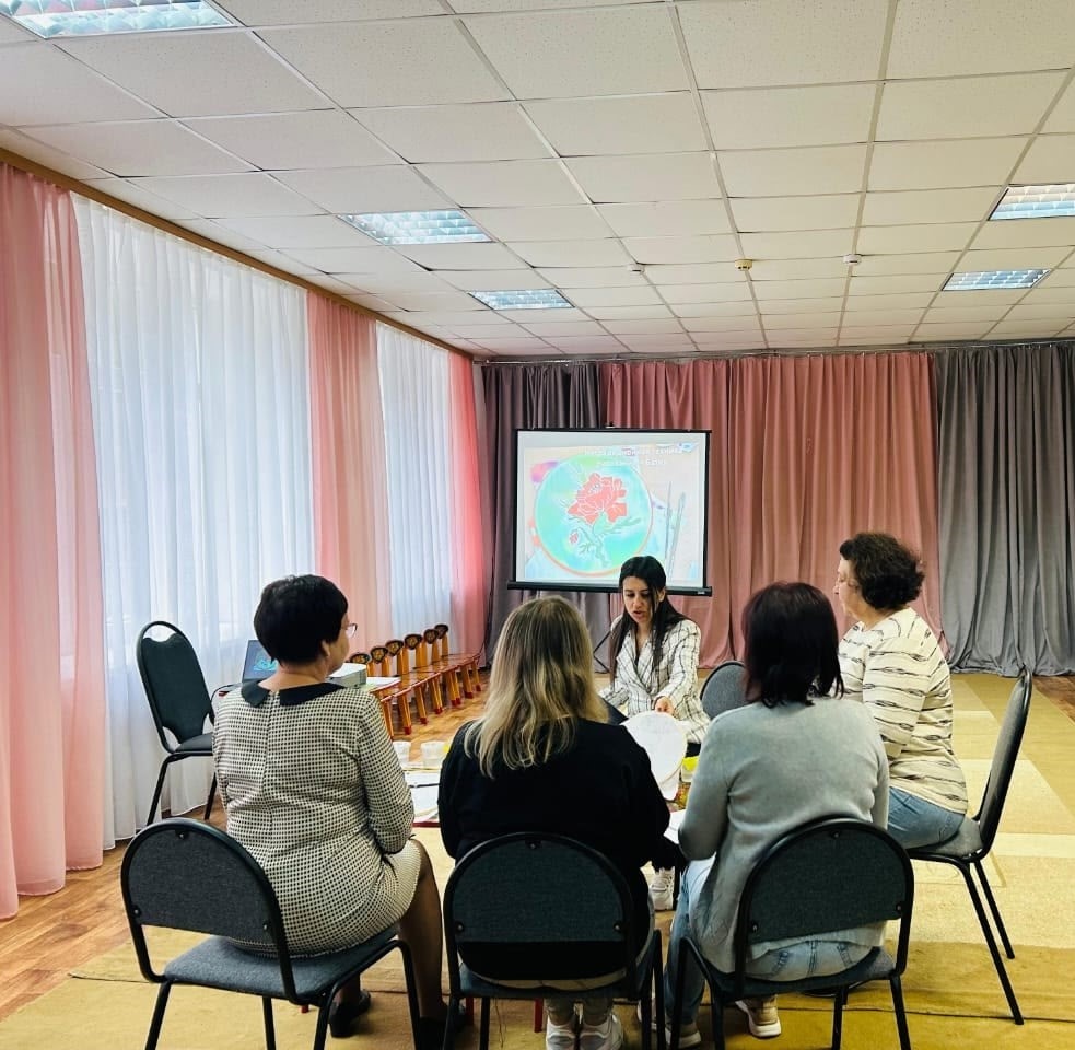Обмен опытом между специалистами помогает улучшить качество образования и воспитания детей. В рамках работы по самообразованию воспитатель группы " Алые паруса" М. Р. Зорикян поделилась с коллегами опытом работы по теме " Техника росписи по ткани - Батик".