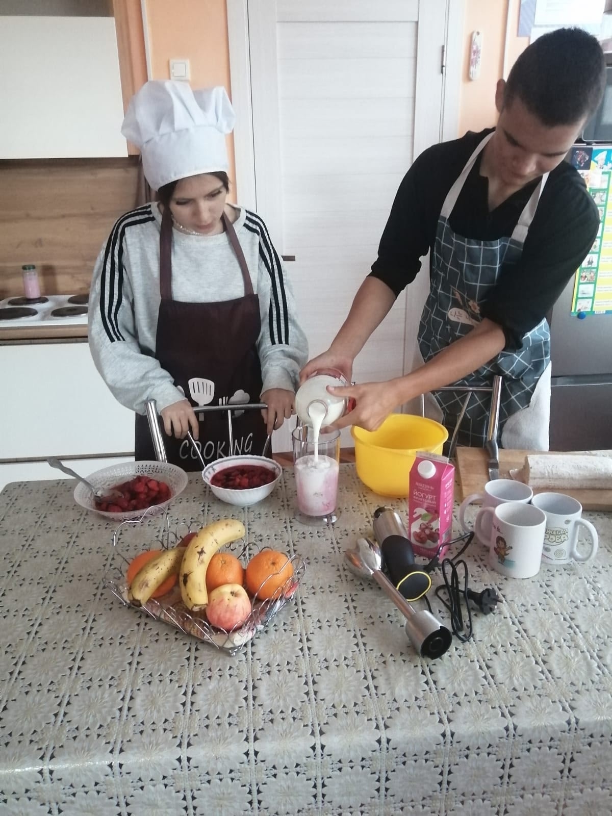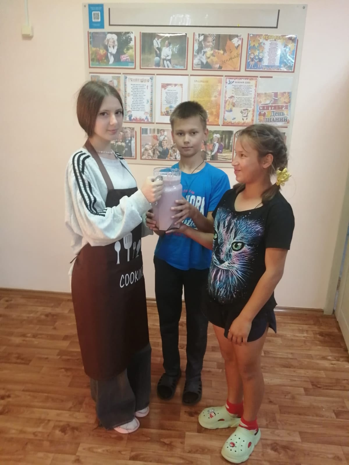 Между группами «Непоседы» и «Алые паруса» прошел обмен кулинарными блюдами, приготовленными в «Школе кулинара». Совместная дегустация фруктового коктейля и пирога «Шарлотка» пришлась по душе всем участникам процесса.