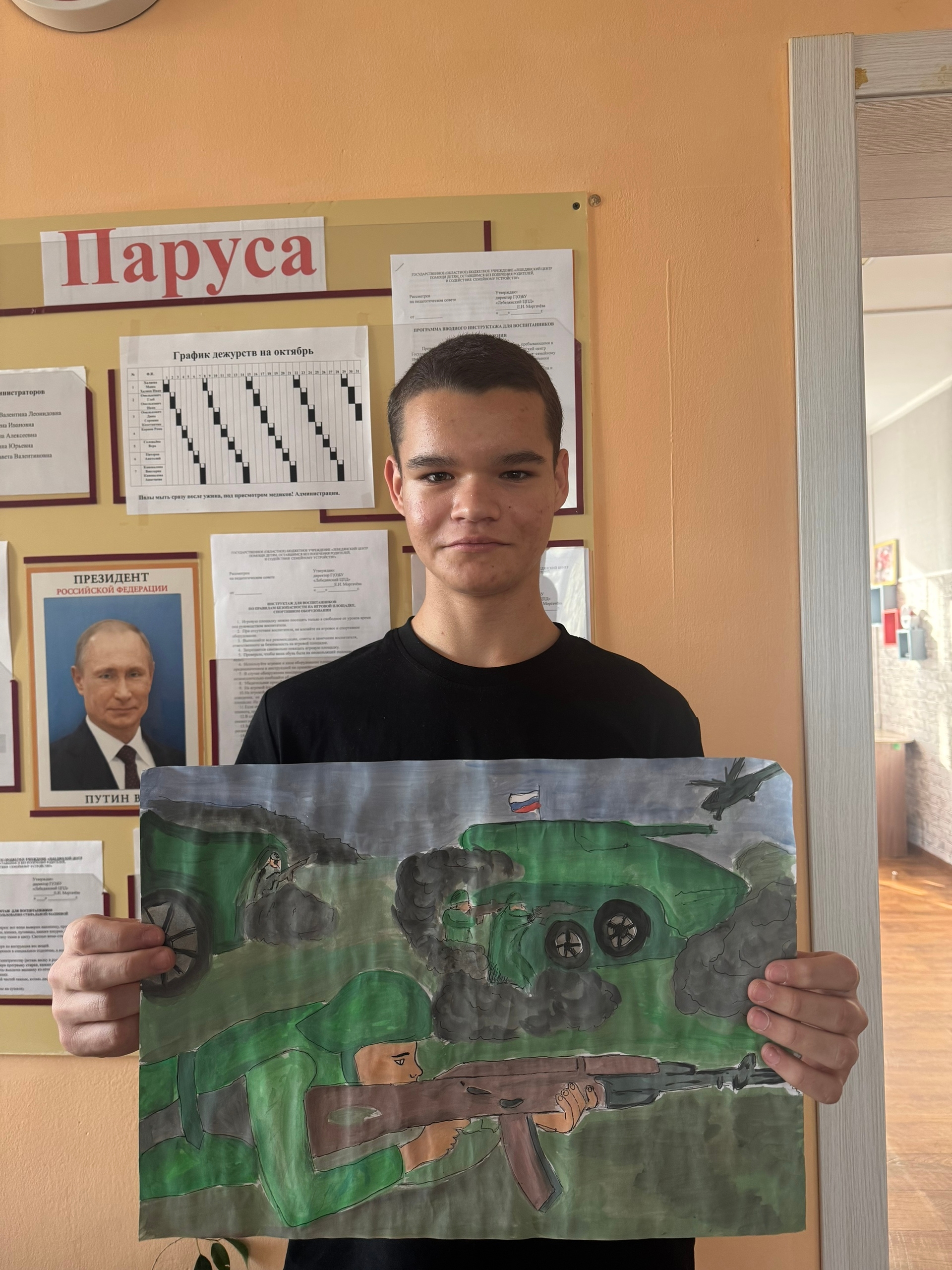 Воспитанники Центра Виктория К., Иван О. и Анатолий П. принимают участие в областной акции по развитию творческих способностей детей с ограниченными возможностями здоровья на тему "80 лет Победы в Великой Отечественной войне". Номинации: "Изобразительное искусство", "Декоративно-прикладное творчество".